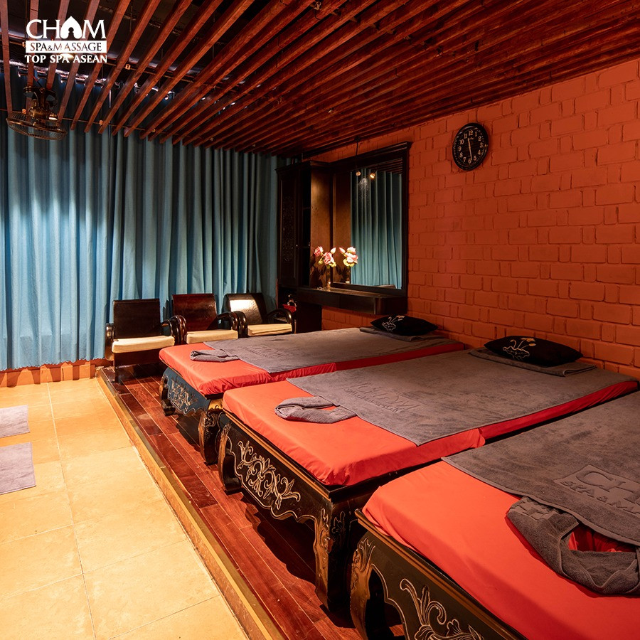 Cham Spa & Massage 是位於越南峴港的一家知名養生休閒會館,結合傳統文化與現代設施,提供按摩、草藥浴與美容療程等服務。該地以結合古占婆建築風格與自然綠意的環境設計而聞名,是峴港地區受旅客與本地人青睞的健康放鬆去處。 服務特色 Cham Spa & Massage 提供多樣化的療程,包括全身與足部按摩、草藥藥浴(如「Dao đỏ 紅瑤藥草浴」)、蒸氣與鹽屋排毒、熱冷水池及臉部護理等。館內同時設有餐廳與咖啡區,方便顧客於療程後休憩用餐 。